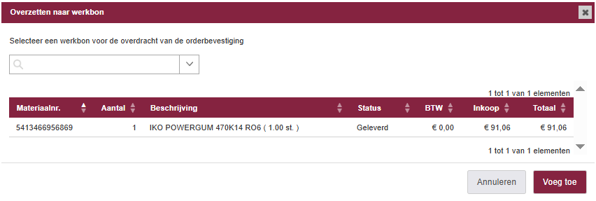 - Materialen van groothandelsbestellingen overzetten naar de werkbon